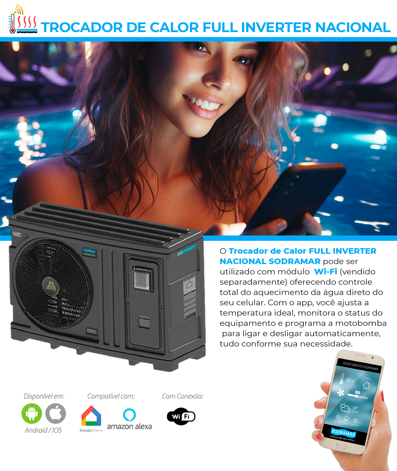 Aquecedor para Piscina – Trocador de calor THI-25 Para Piscinas De Até 22 Mil Litros – Sodramar (Full Inverter)